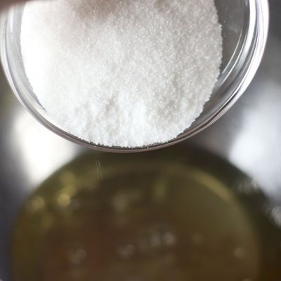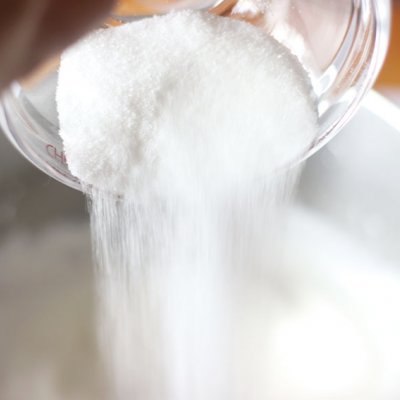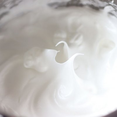 - 當蛋白打至溼性發泡的狀態後,再加入剩餘的細砂糖