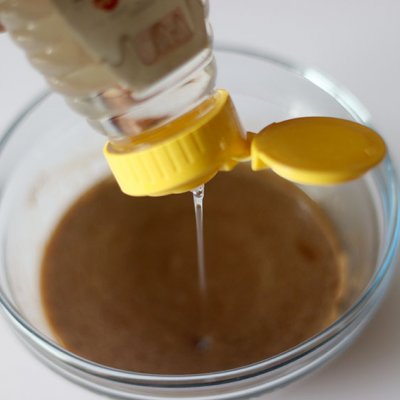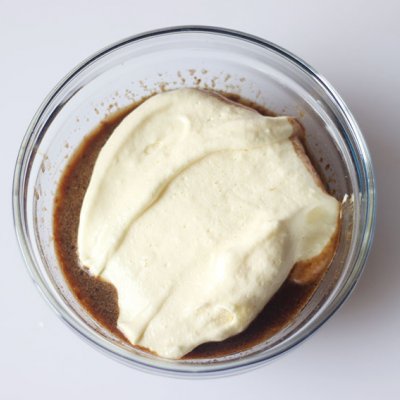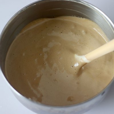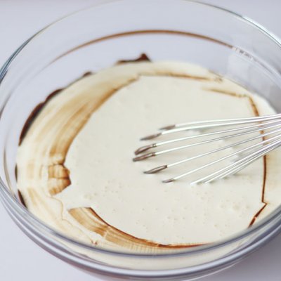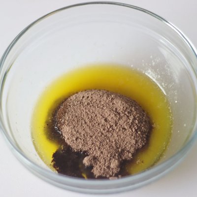 - 取少量的蛋糕糊與之前的可可咖啡液拌勻