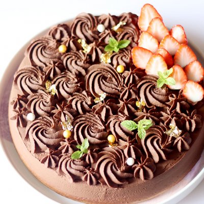 - 空白的地方放草莓做裝飾,我還加了一點薄荷葉,糖珠和食用金箔