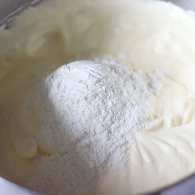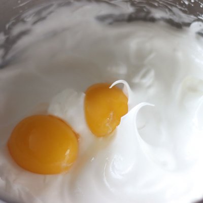 - 分次加入蛋黃,與蛋白攪拌均勻
