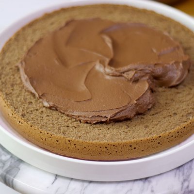 - 抹平之後再加一層蛋糕片,最後將頂部和四周也都抹平