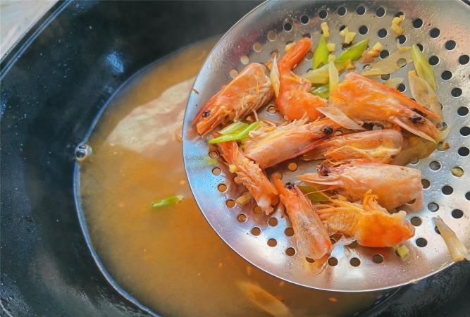 5.加入適量的熱水,煮2-3分鐘,將蝦頭撈出不要。