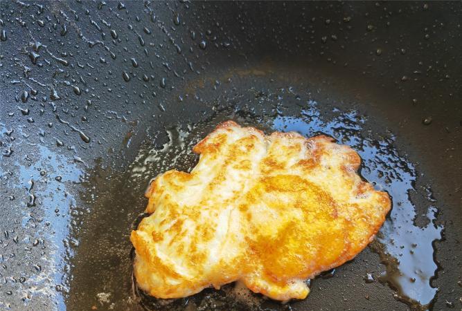 3.鍋內加入油燒熱,將雞蛋磕入鍋內煎荷包蛋,把雞蛋煎至兩面金黃,將荷包蛋盛出待用。