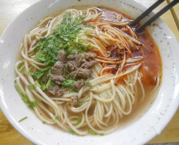 不大的小館兒,進門有濃郁的牛羊肉的味道。牛肉拉麵湯頭濃郁,純粹。面細卻不綿,牛肉丁狀,好吃卻不多。這家店的八里牛肉麵做法特別講究,湯頭要熬上十幾個小時,喜歡這種傳統風味的朋友絕對要試試。