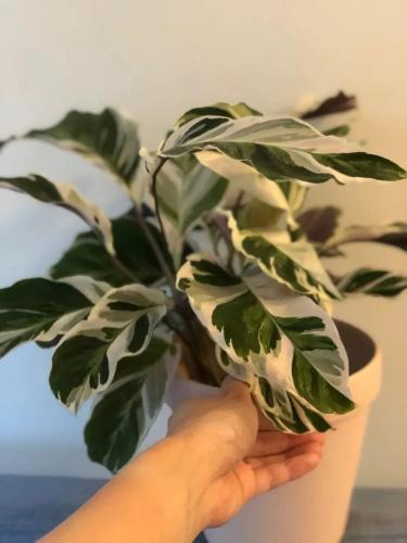 其中油畫竹芋的葉子是帶斑錦的,葉面看起來清新靚麗,像油畫一般,葉子特別薄,很容易焦邊,養護難度最高,特別是在北方地區,一些室內比較乾燥的地方,常年溼度低於40%以下。