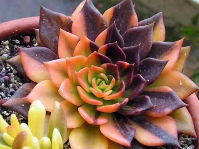 特別是常見的金枝玉葉、晚霞之舞、紫珍珠和黑王子等,就經常被製作成藥錦多肉,大家在購買時,要看是不是自然變異的多肉植物。