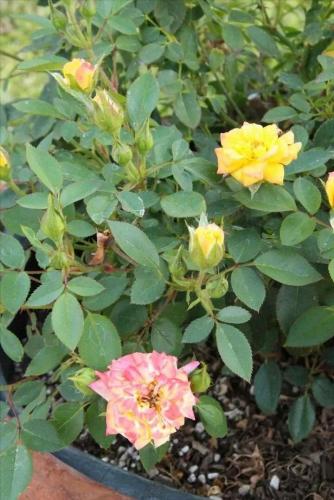市場上的微型玫瑰,實際上就是微型月季,通常是幾個不同品種搭配在一個小盆裡,第一次開花的養分都跟不上,第一次還沒開完,花朵就開始打蔫,開始不斷黑杆枯萎。